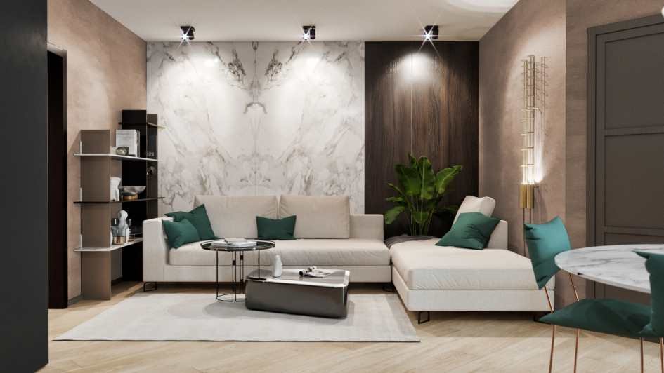 • в гостиной стоит использовать сочетание потолочного света и локальной подсветки;